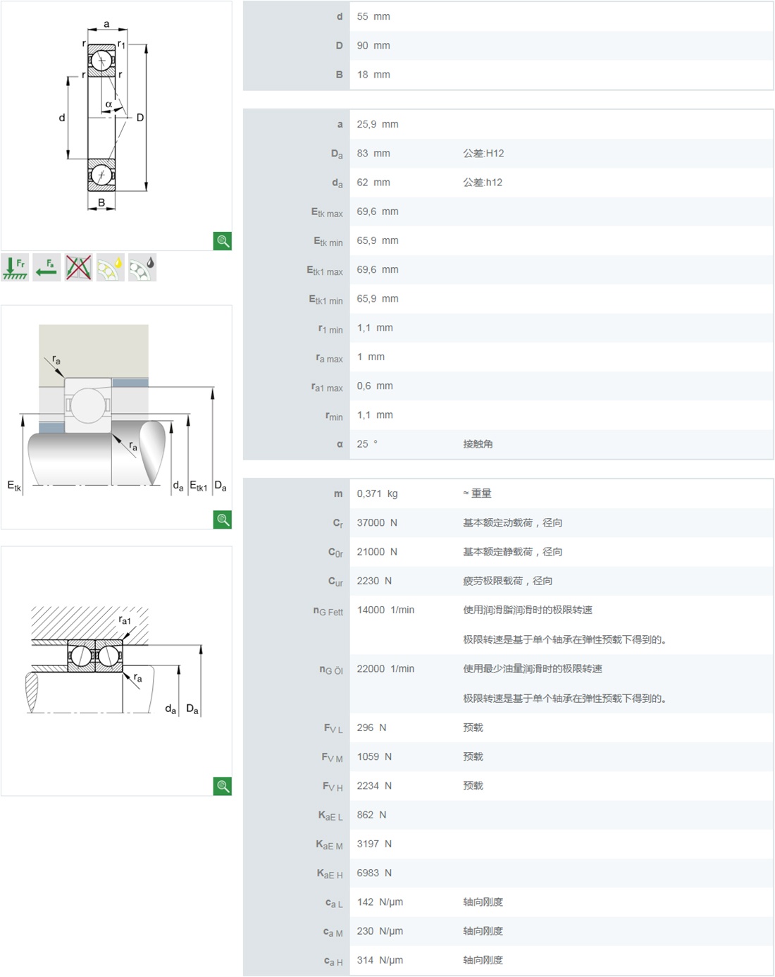 | 7016 | 80 | 125 | 22 | 58.7 | 55.3 | 8000 | 11000 | 53.4 | 50.6 | 5800 | 7200 | 0.93 |