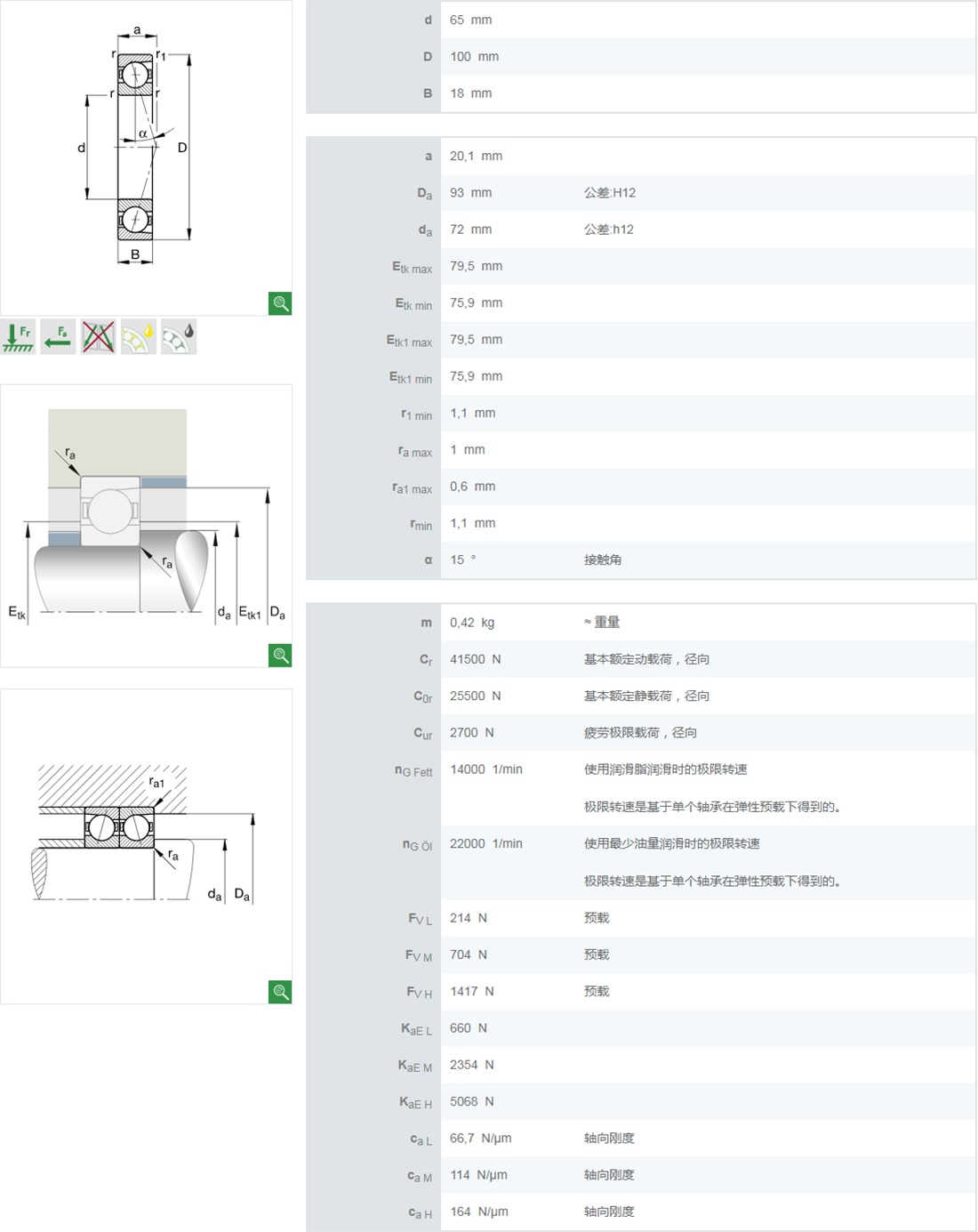 | d | D | B | 額定載荷(KN) Cr | 額定載荷(KN) Cor | 極限轉(zhuǎn)速(rpm) 脂潤(rùn)滑 | 極限轉(zhuǎn)速(rpm) 油潤(rùn)滑 | 額定載荷(KN) Cr | 額定載荷(KN) Cor | 極限轉(zhuǎn)速(rpm) 脂潤(rùn)滑 | 極限轉(zhuǎn)速(rpm) 油潤(rùn)滑 | ||