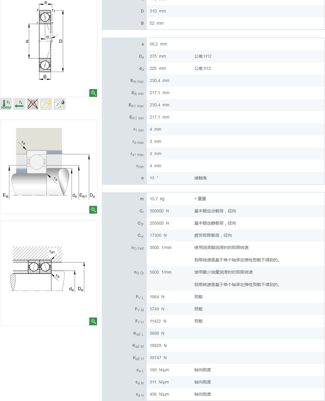 | 7205B | 25 | 52 | 15 | 14 | 8.7 | 12000 | 15000 | - | - | - | - | 0.135 |