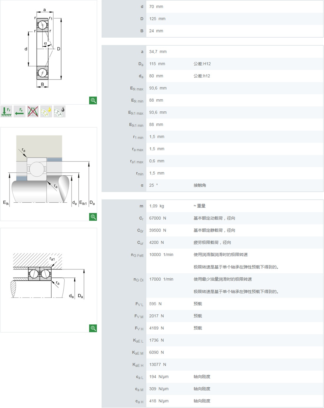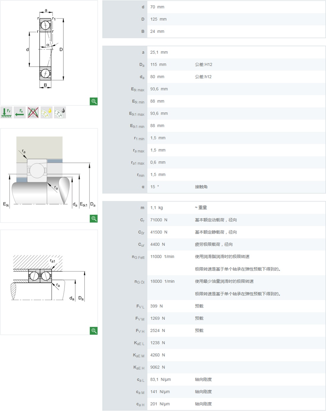 | 7214B | 70 | 125 | 24 | 63.2 | 50.6 | 4600 | 6100 | - | - | - | - | 1.12 |