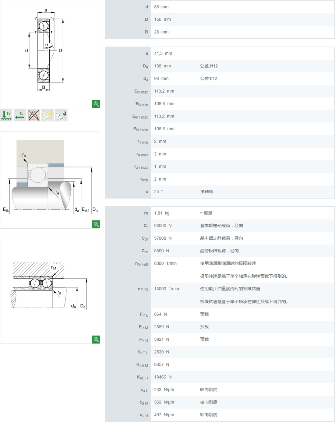 | 7217B | 85 | 150 | 28 | 89.2 | 76 | 3800 | 5000 | - | - | - | - | 1.87 |