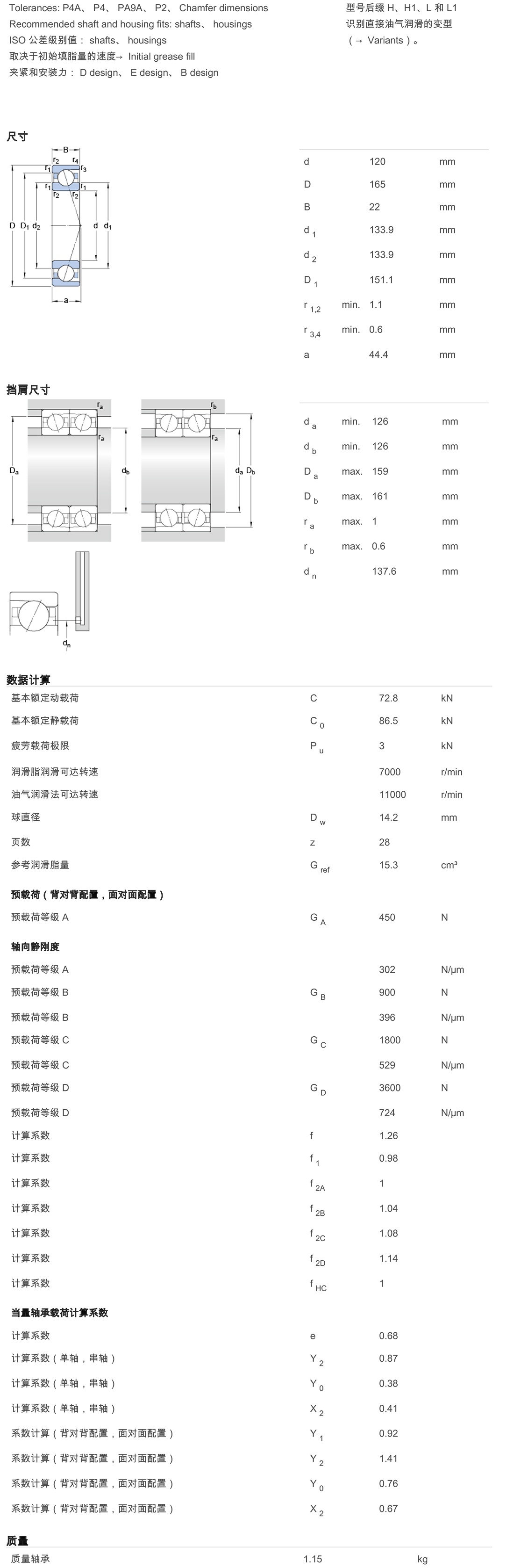 | 71924AC | 120 | 165 | 22 | 72.8 | 86.5 | 7000 | 11000 | 1.15 |